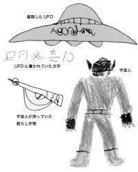 そして、UFOからチョコレート色でしわしわの「のっぺらぼう」の宇宙人が現れ小学生2人のうち1人が肩をたたかれ恐怖でその場に座り込み、もう1人は逃げて家族を呼びに行きましたが戻ってきた時には宇宙人は姿を消していたと証言しました。